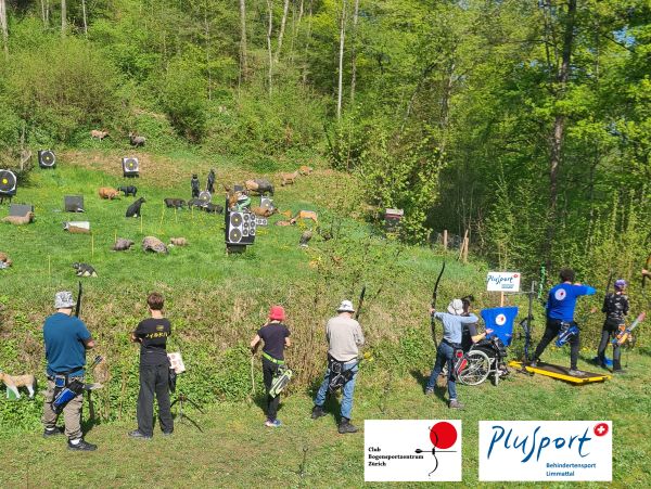 Büchsen-Bogenschiessen normal und mit Hilfsmittel für Einschränkung Einarmig, Blind, Paraplegiker und Tetraplegiker im Rollstuhl. Treffergewinn Getränke-Jeton von Sponsor Run-Archery.ch: Kann im Bogensportzentrum Zürich während eines kostenlosen Schnuppertrainings eingelöst werden.